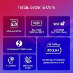 • USB 20 Gb/s rear Type-C and front-panel header with PD up to 30 W, dozens of USB Gen 2 and Gen 1 ports